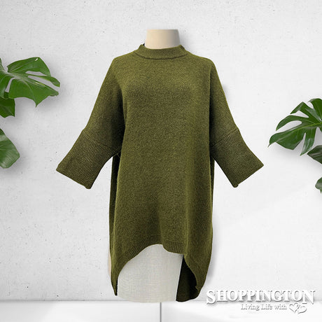 Drop Back Sleeved Jumper - Moss