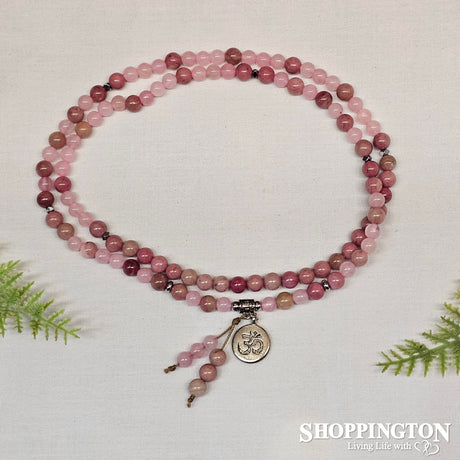 Rhodochrosite and Rose Quartz Mala Necklace- 108 Beads