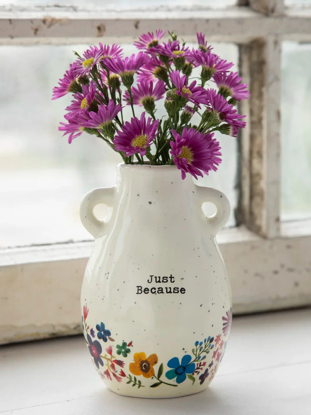 Small ceramic vase fits on a windowsill or any shelf. Just add your favorite flowers!