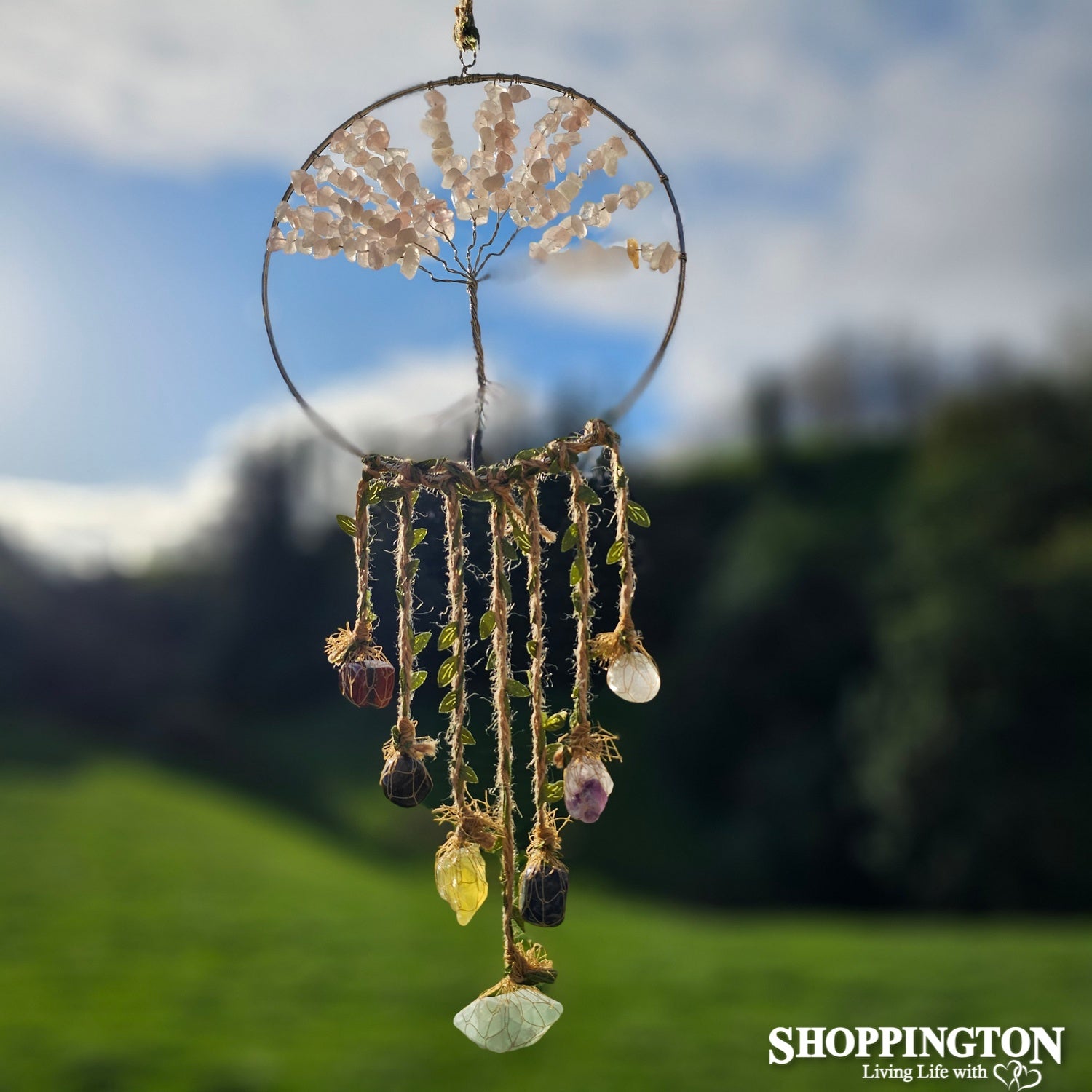 Crystal Tree of Life Dream Catcher- Rose Quartz-7Chakras