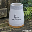 Ceramic tealight holder with bamboo base and verse, candle not included