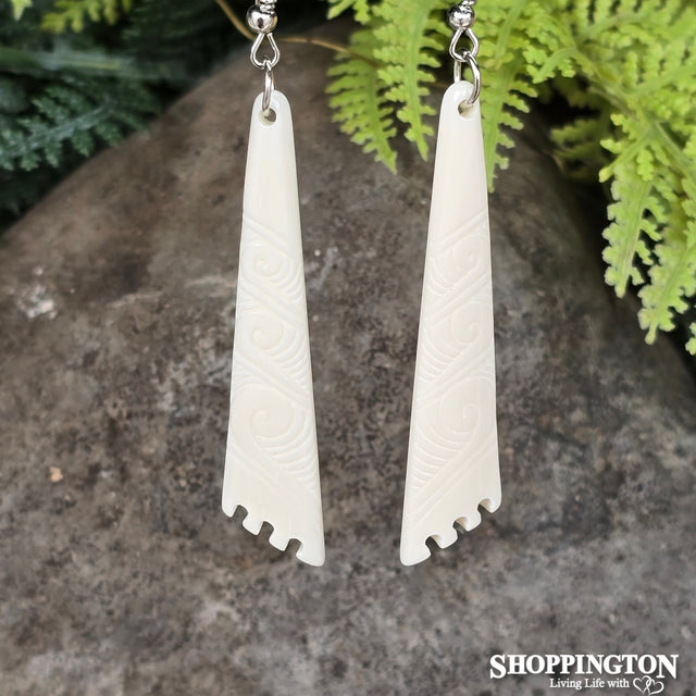 These beautiful bone earrings are hand-carved from beef-bone. Many of these are finished in traditional Maori designs while others are more contemporary. Our bone carvers go the extra mile to create true stunning wearable art.
