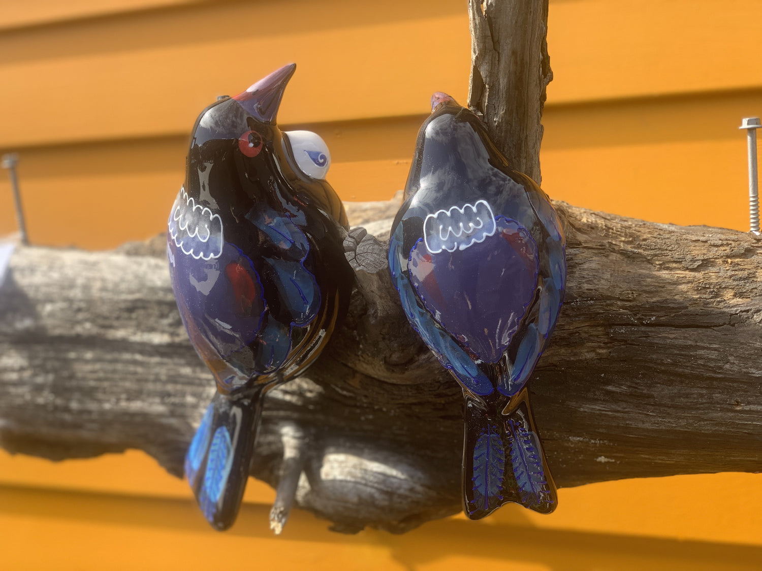 NZ Made Garden Ornament - Splashy Bird Art / Dark Tui Bird