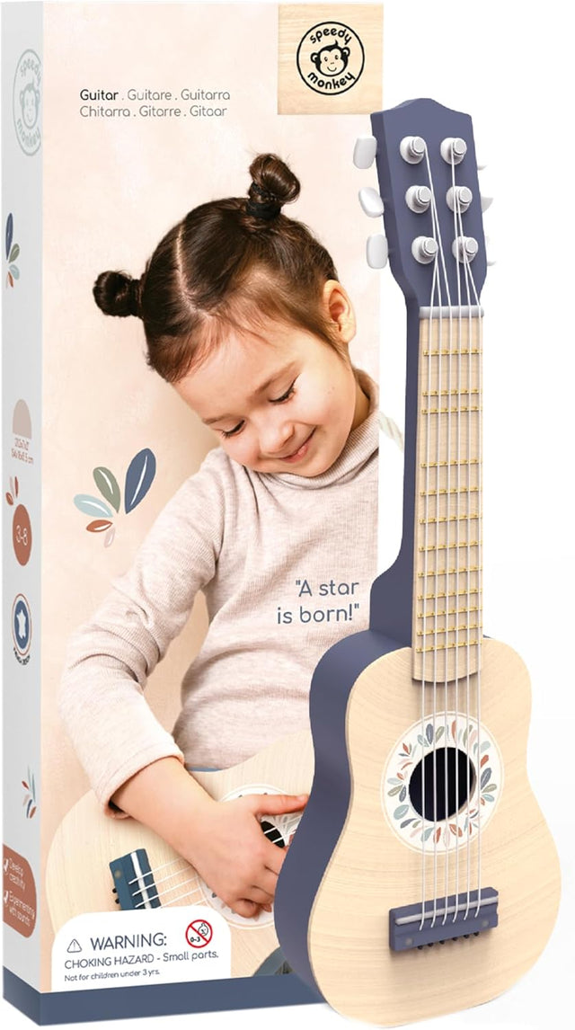 Music ignites all areas of child development, hence, this sturdy nylon six string toy guitar is a must have for your little one! The guitar is a calm blue and wooden colour with surface coating designed to prevent finger injuries. With it being easy to carry around, your child will enjoy the sound and actively strengthen and develop their musical talents anywhere at anytime. This toy is crafted from sustainably sourced wood from FSCĀ® certified forests and coated with non toxic paint.