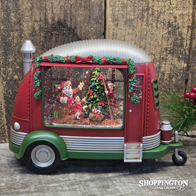 Add this to your Christmas deocrations.  A quirky Snow Globe with Santa in a Caravan. Lights up.