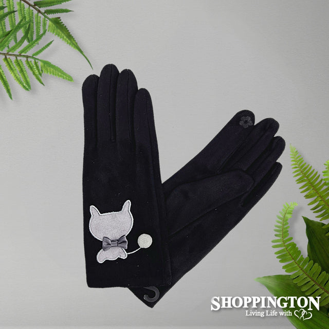 Suede gloves with pussycat applique