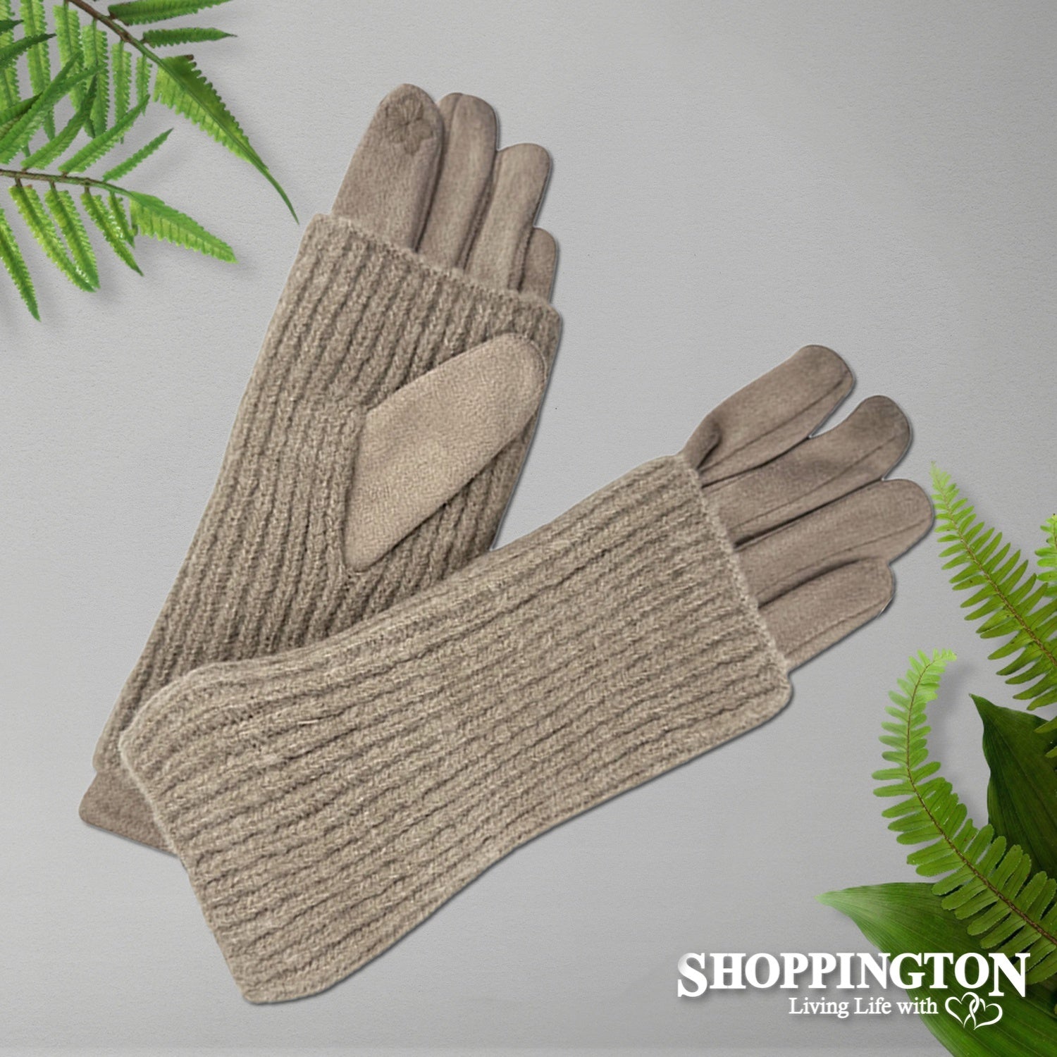 Suede gloves with a removable knit fingerless cover. Wear together for extra warmth or individually.