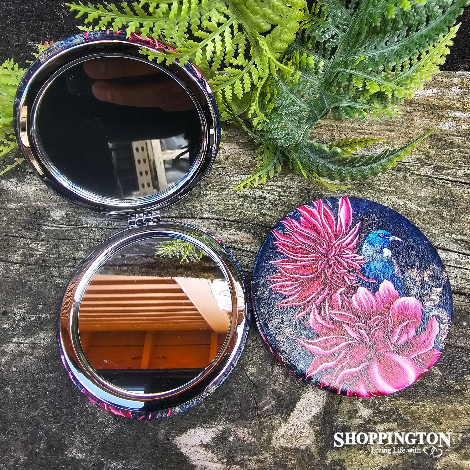Compact Mirror NZ Print - Tui in Dahlia - Anita Madhav is backordered and will ship as soon as it is back in stock.