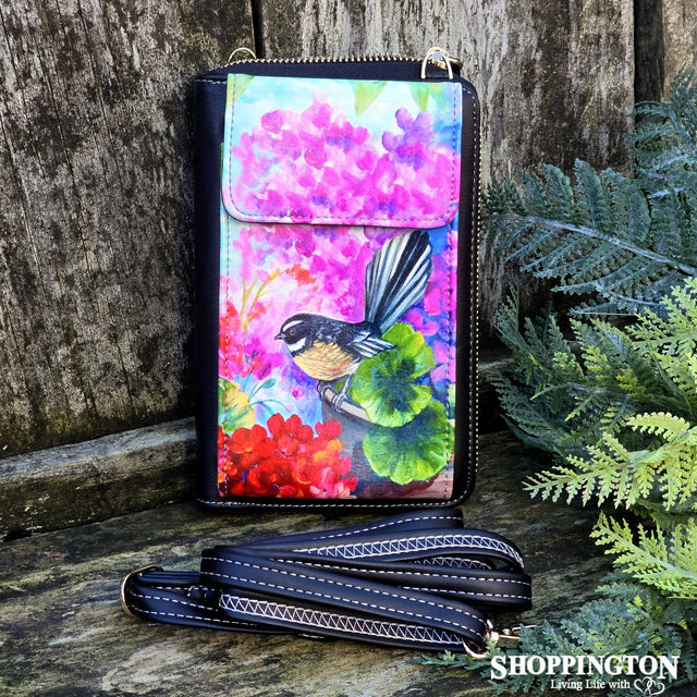 Leather NZ Print Cellphone Shoulder Bag - Fantail Floral