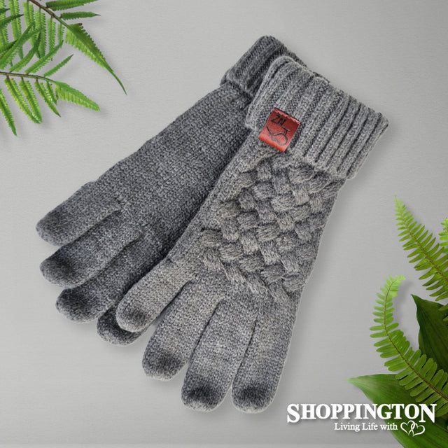 Cable Knit Wool Mix Gloves - Grey