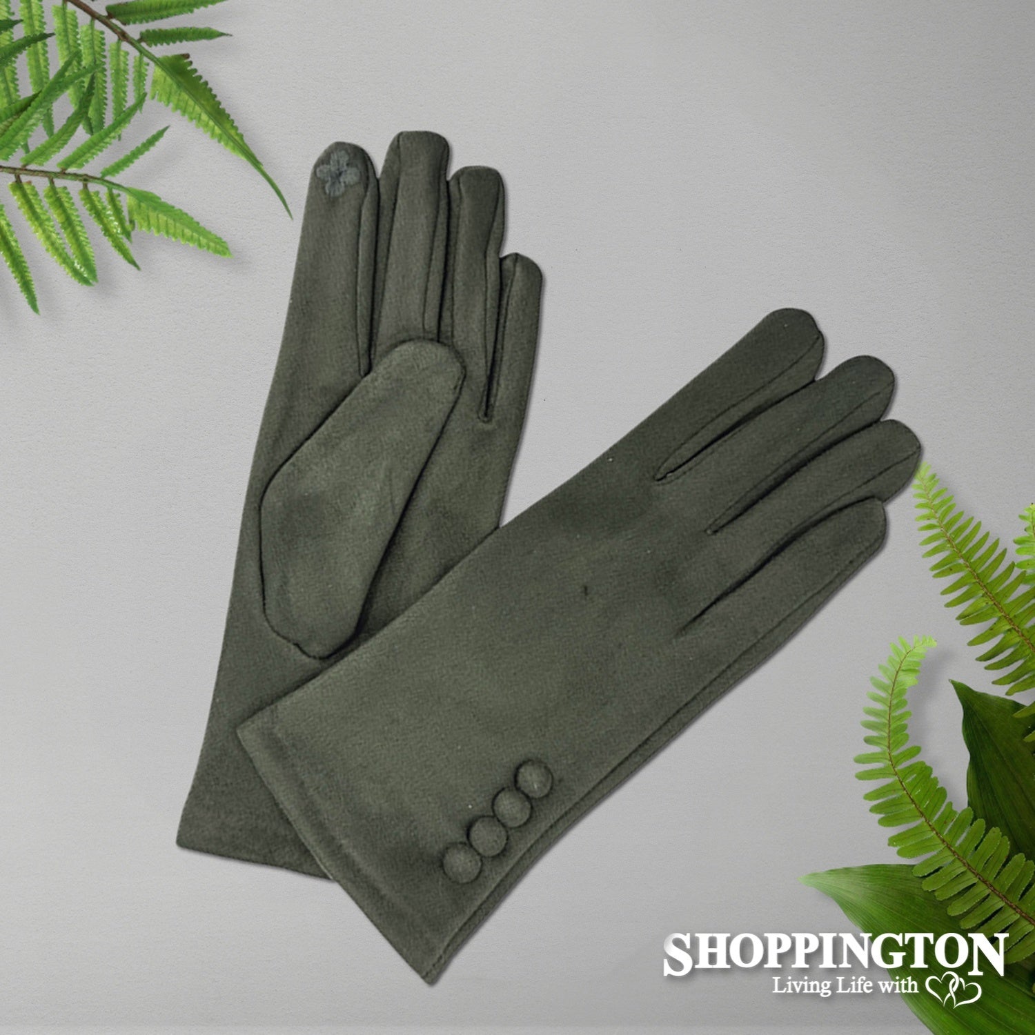 Suede gloves with four button detail and embroidered flower finger tip