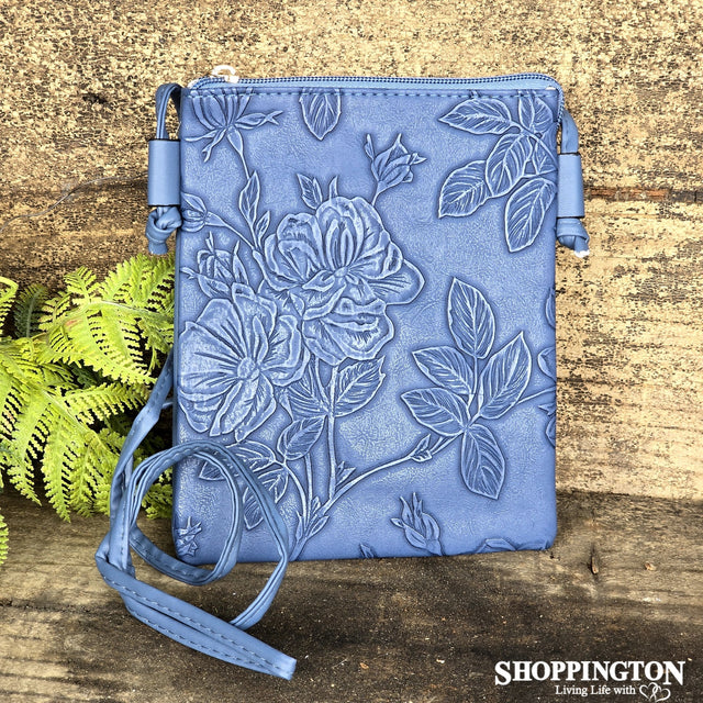 Handbag - Hibiscus Embossed Phone Bag / Navy is backordered and will ship as soon as it is back in stock.