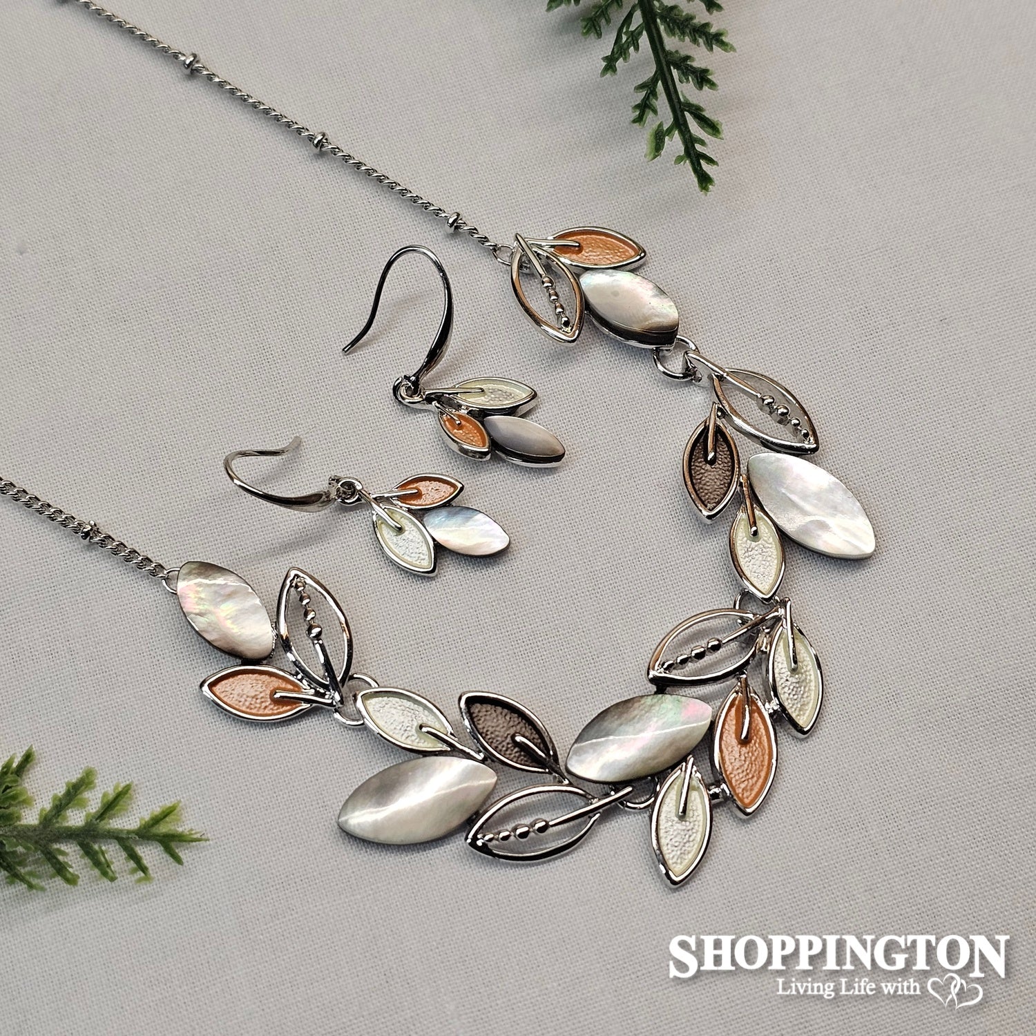 We love this Necklace and Earrings - MOP / Silver & Apricot Leaves too!