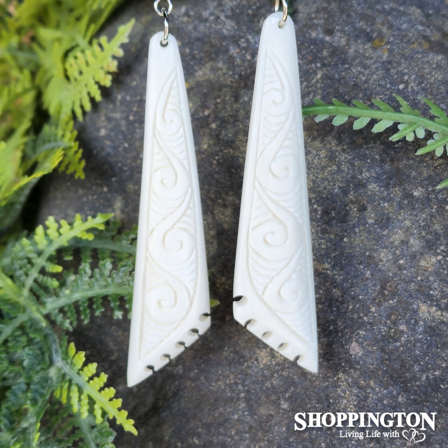 These beautiful bone earrings are hand-carved from beef-bone. Many of these are finished in traditional Maori designs while others are more contemporary. Our bone carvers go the extra mile to create true stunning wearable art.