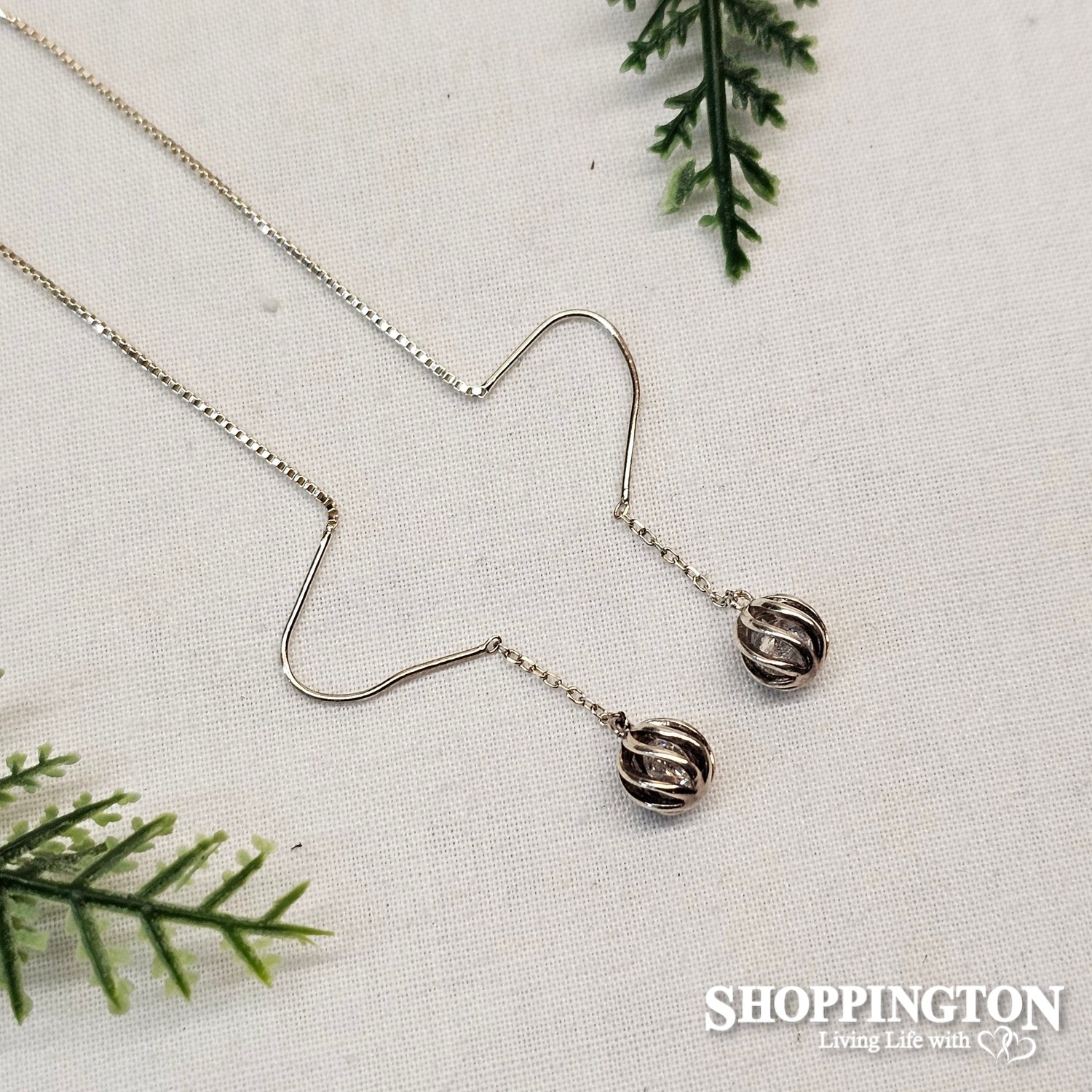 Earrings - Ball & Zircon 925 Sterling Silver Chain