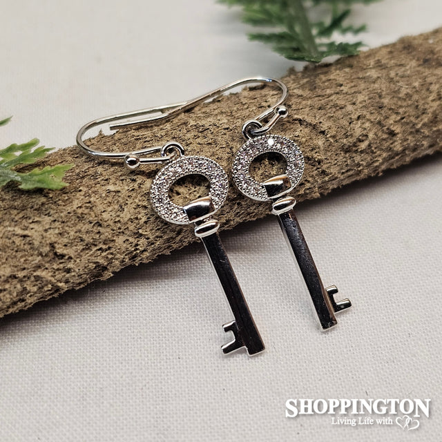 Earrings - Diamante Heart Key