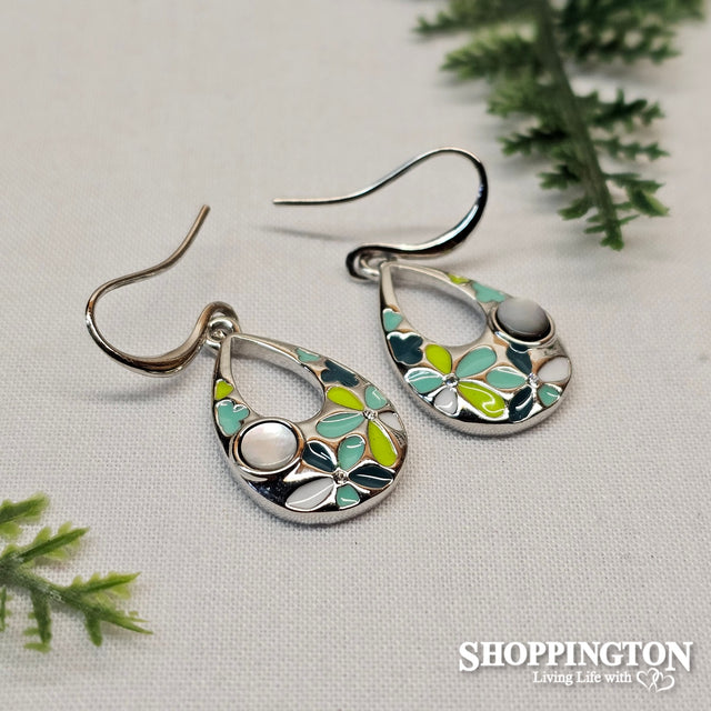 Earrings - Green MOP Flowers