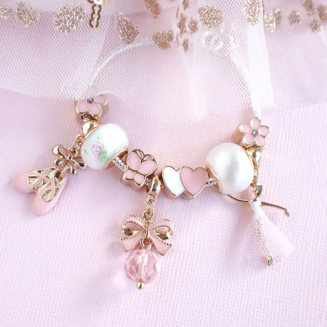 A ballerina with her beautiful white tutu, wonderful satin ballet slippers, and a flowing pink ribbon for luck: this is the scene we set with the enchanting new Ballerina Charm Bracelet. Glissade over and under, pirouette to the side, and stand en pointe, the Ballerina Charm Bracelet is a ballet memento and a celebration of the spirit of dance.