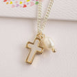 A simple but elegant gold cross with a radiant pearl charm makes a wonderful gift for a special occasion. This necklace is a combination of the solemn and the divine and will be a cherished symbol of devotion for whoever wears it. Match it up with LH P04 Freshwater Pearl Cross Elastic Bracelet.