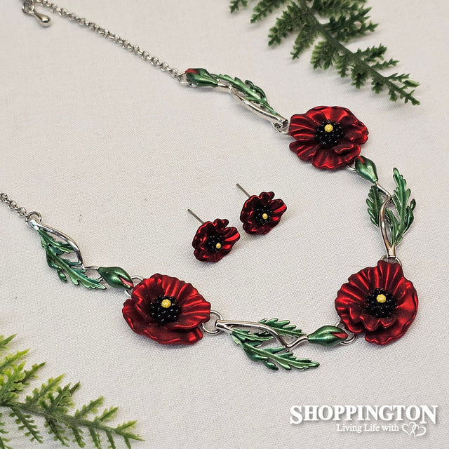 Necklace - Red Poppy & Leaves is backordered and will ship as soon as it is back in stock.