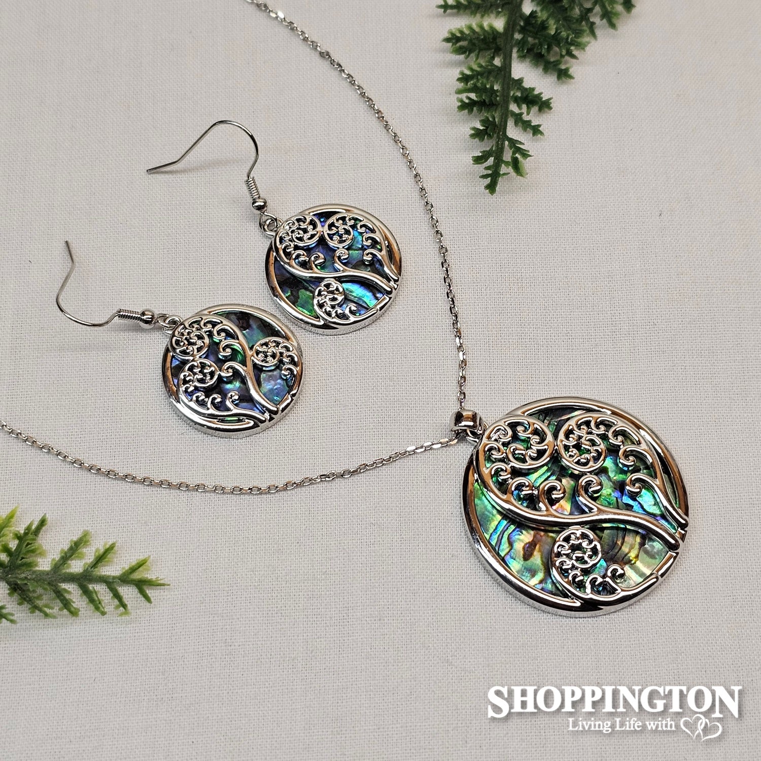 Necklace - Round Paua & Frond Set