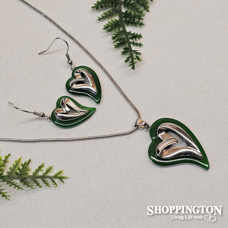 Necklace - Jade Resin Abstract Heart Set
