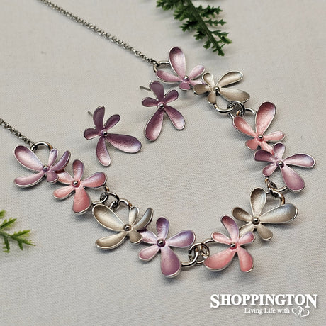 Necklace - Lilac & Silver Flower Set