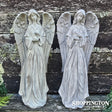 These stone look angels are designed for indoor or outdoor use. Two styles available, sold individually.