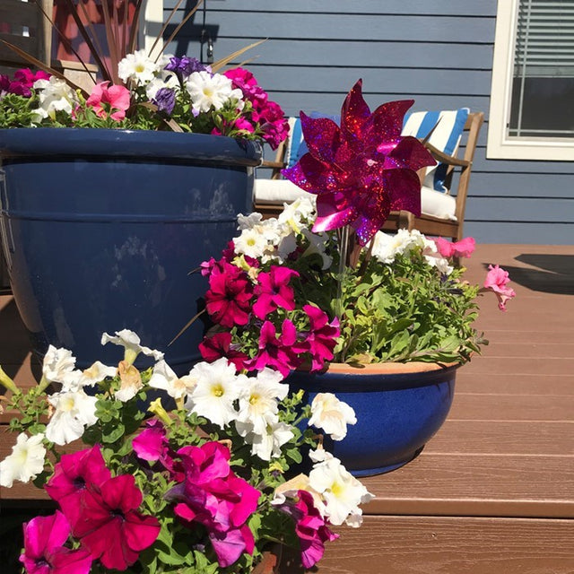 20cm Sparkle Pinwheel Spinner is made with sparkle reflective holographic Mylar.