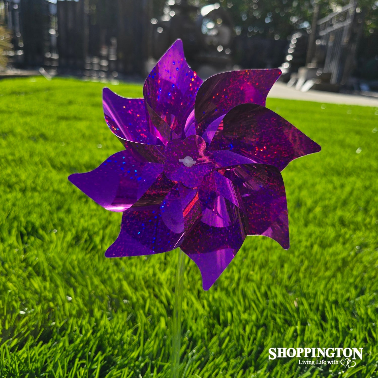 20cm Sparkle Pinwheel Spinner is made with sparkle reflective holographic Mylar.