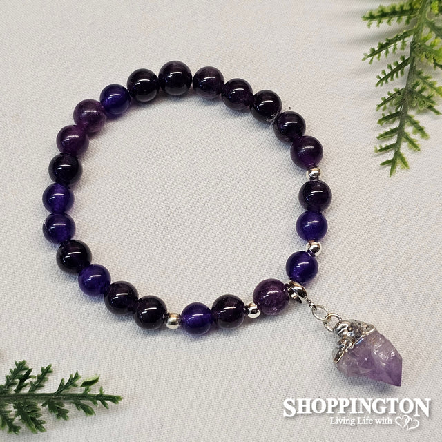 Amethyst bead bracelet featuring a rough cut Amethyst charm.