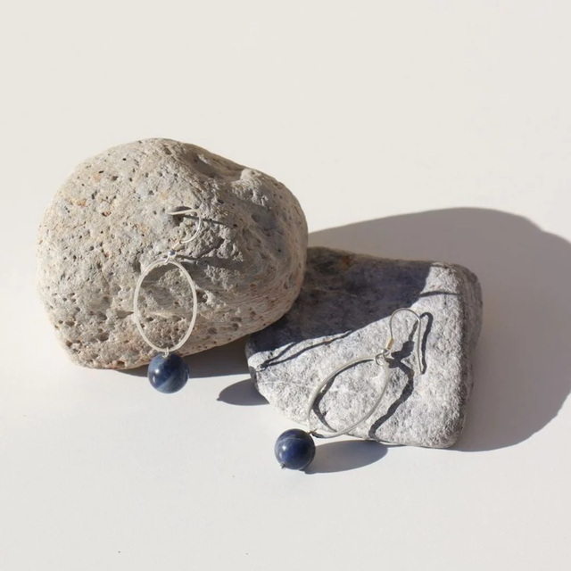Hanging on a sterling silver hook style earring and sterling silver oval is the beautiful blue vein stone, also known as sodalite. Every shade and colour within the blue stone is a little different making your pair of earrings perfectly unique.