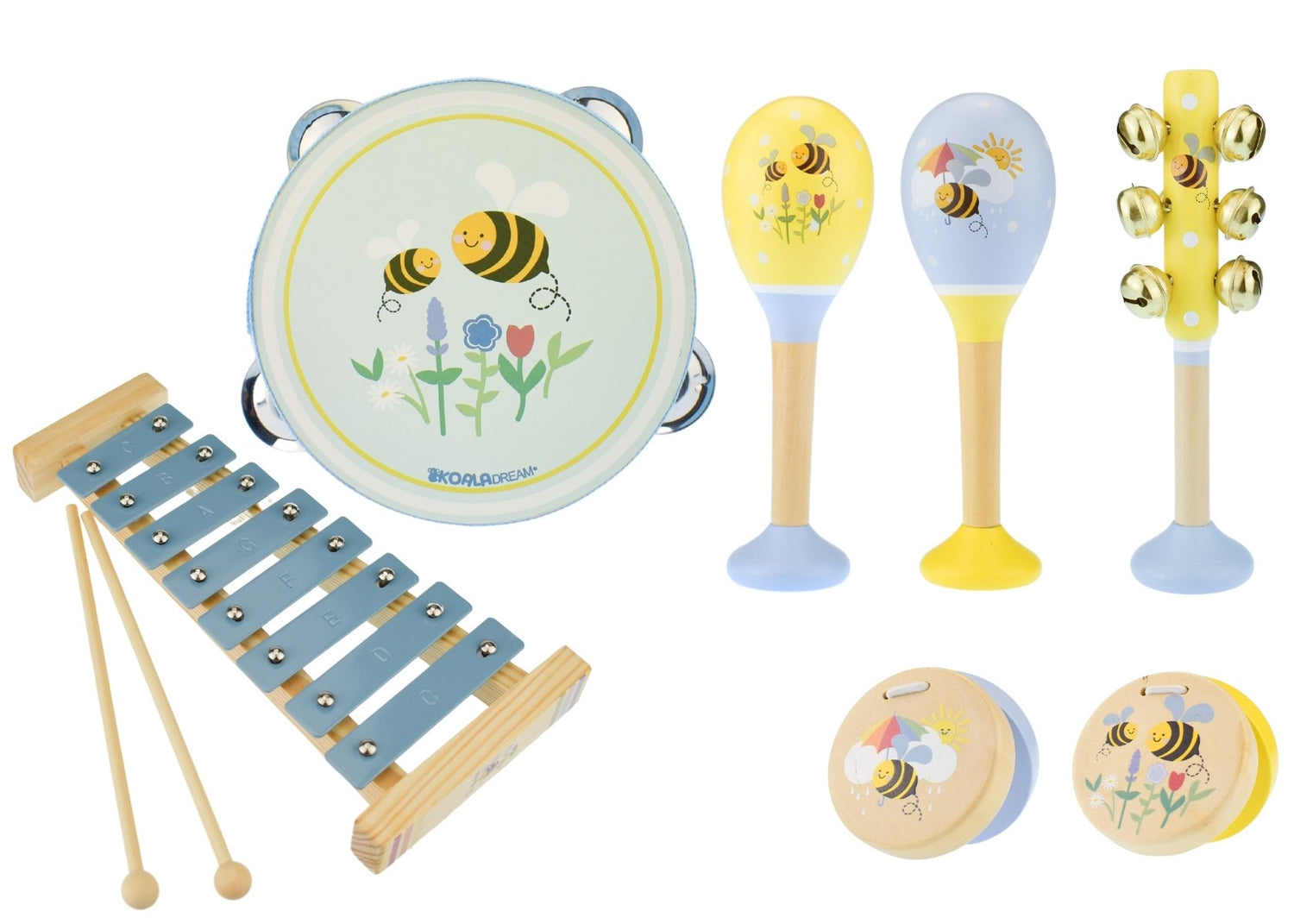Introduce your little ones to the joy of music with the Koala Dream Buzzy Days Bee 7pcs Musical Set. Ideal for sparking creativity and enhancing motor skills, it’s perfect for any young musician's playtime repertoire. Crafted from FSC certified timber and painted with child-safe, non-toxic paint, it ensures a safe and eco-friendly playtime. Designed in Australia by Koala Dream, this set combines quality, safety, and fun. Perfect for little hands, the maraca, bell stick, and tambourine provide endless hours of musical enjoyment. Bring home the Buzzy Days Bee 3pcs Musical Set and watch your child's musical journey take flight.