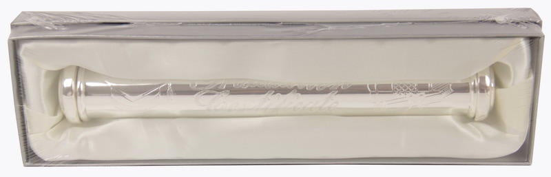Silver finish Certificate Holder with engraved designs.