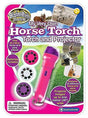 This handy torch is also a photo projector that projects images up to one meter wide onto walls and ceilings. Includes 24 horse and pony photographs of 22 different breeds. Turn lens head to focus. Batteries included.