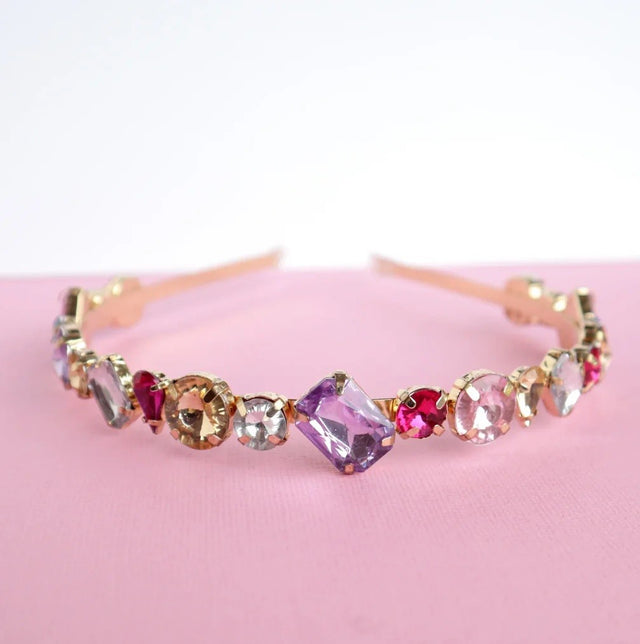 Simply one of the most beautiful jewel-encrusted headbands you will ever see, a real find for anyone who jewels or headbands. Each jewel has been curated to give a wonderful luxe impression with colour, shape, and orientation. Everything is set just so to create a beautiful look for a very special little one.