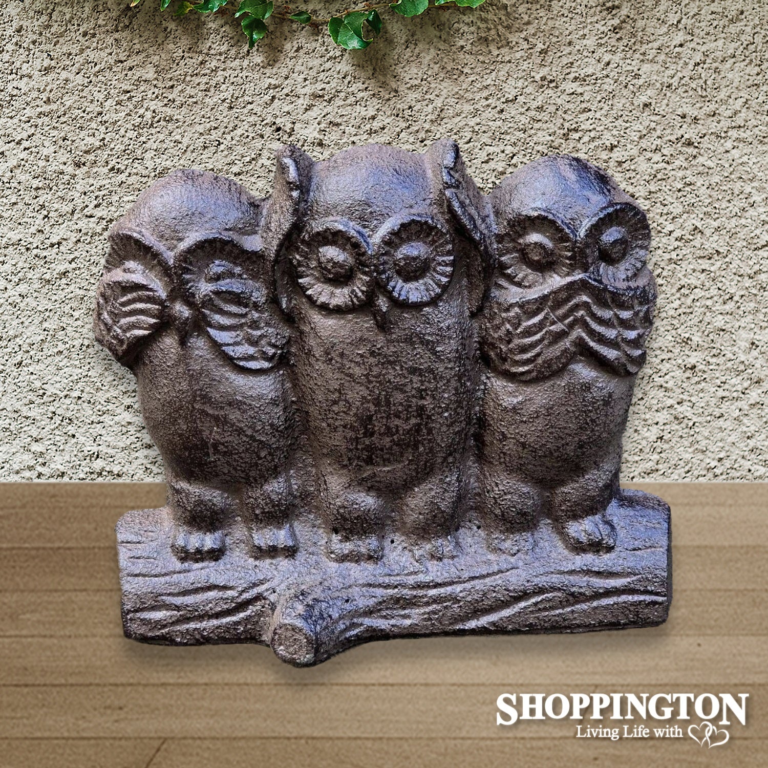 Cast Iron Door Stop - Hear No See No Speak No Evil Owl