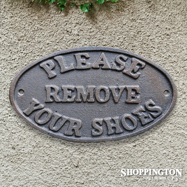 Cast Iron Plaque - Please Remove Your Shoes is backordered and will ship as soon as it is back in stock.
