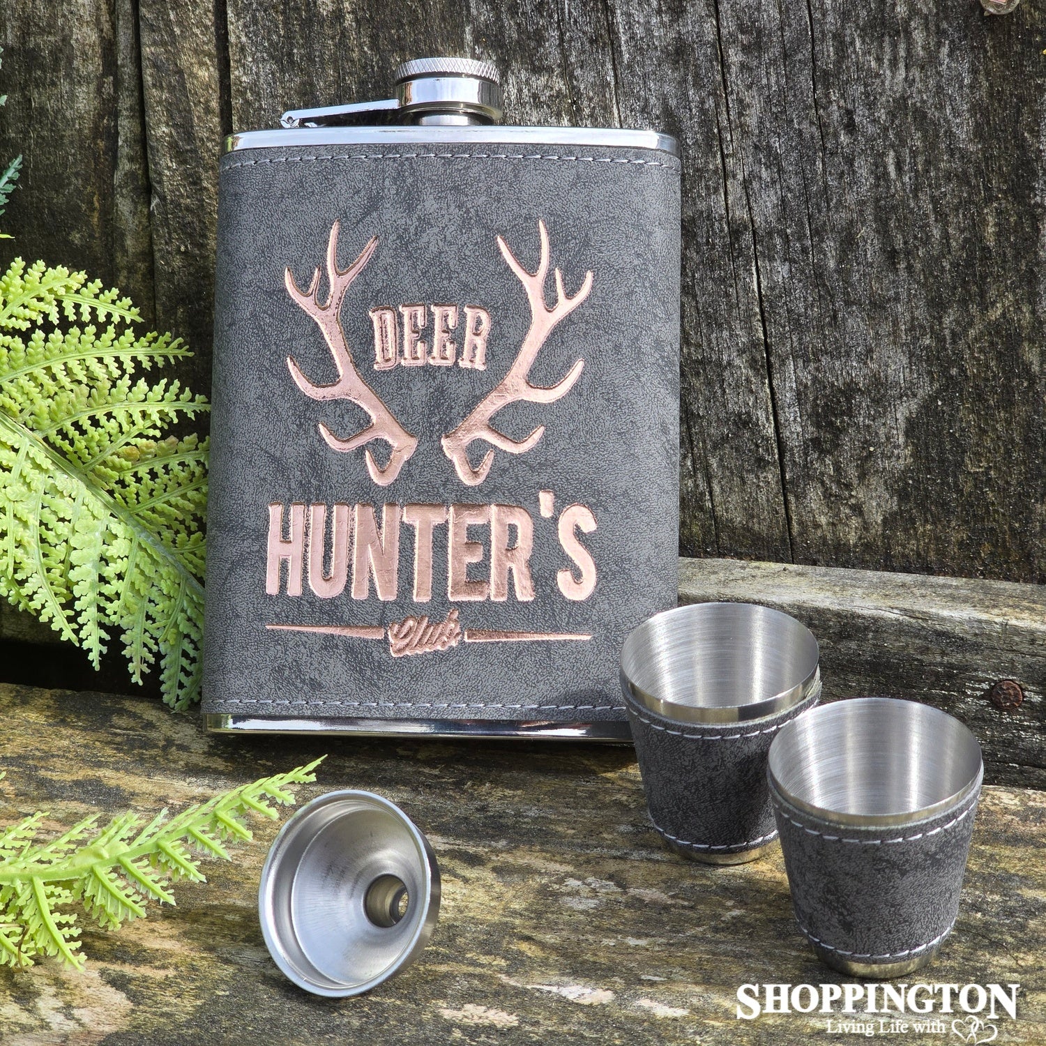 Set includes 6oz capacity flask, 1 funnel, and 2 cups
