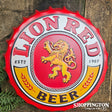 Lion Red Bottle Top Pressed Metal Wall Art 35cm