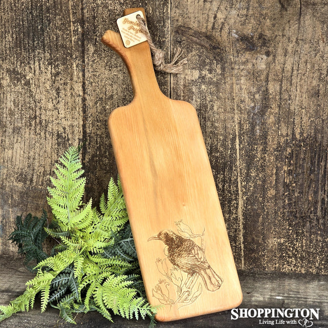NZ Made Rimu Engraved Paddle Board - Tui is backordered and will ship as soon as it is back in stock.
