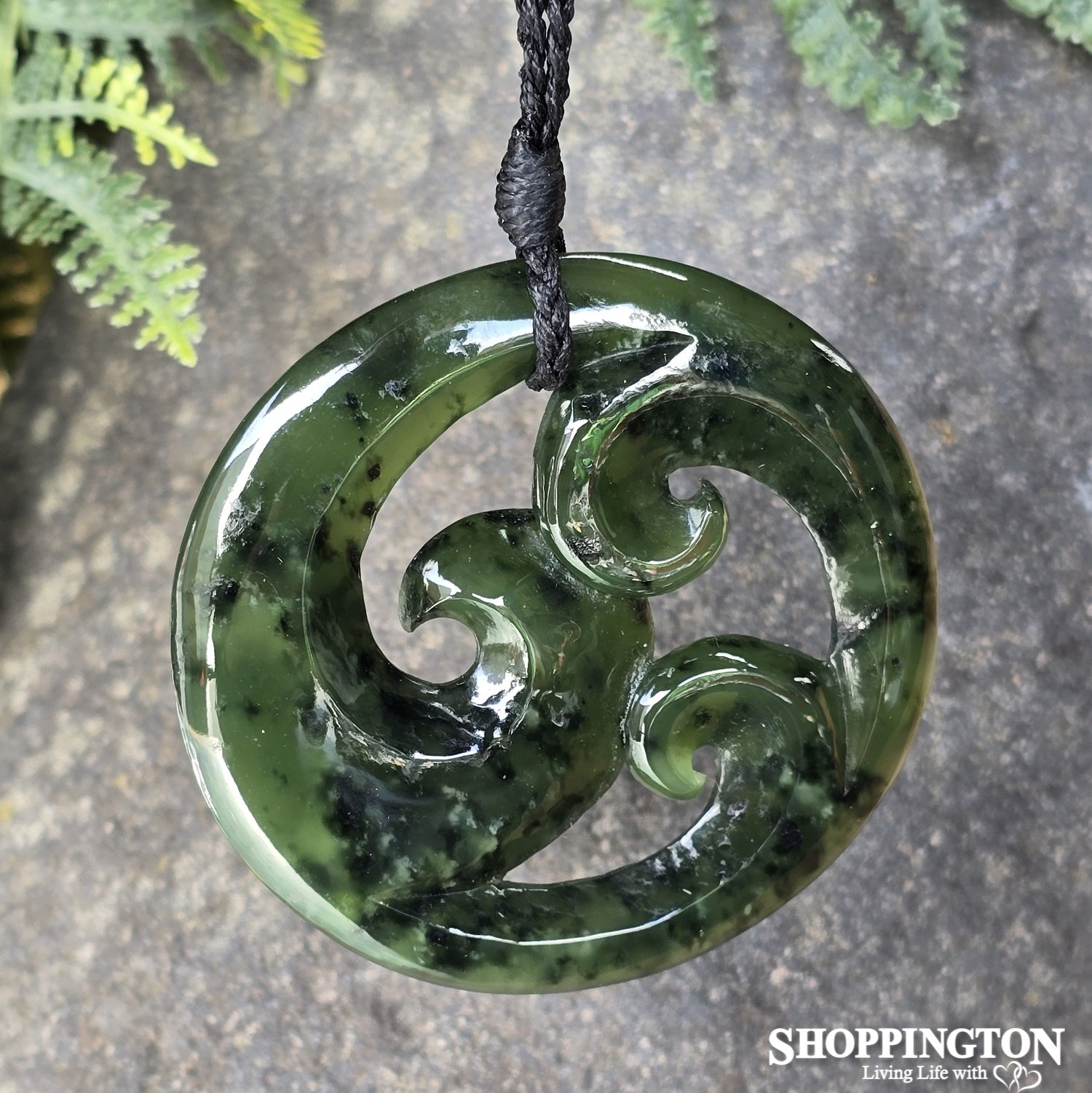 Pounamu Pendant - Triple Koru 60mm is backordered and will ship as soon as it is back in stock.