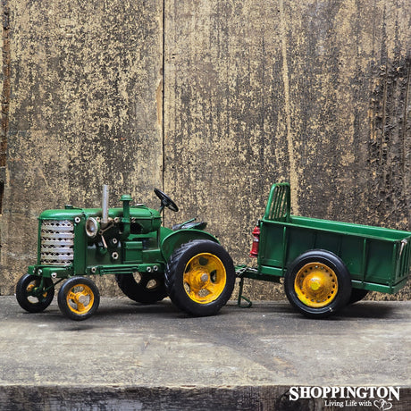 Die Cast Metal Green Vintage Tractor and Trailer Replica