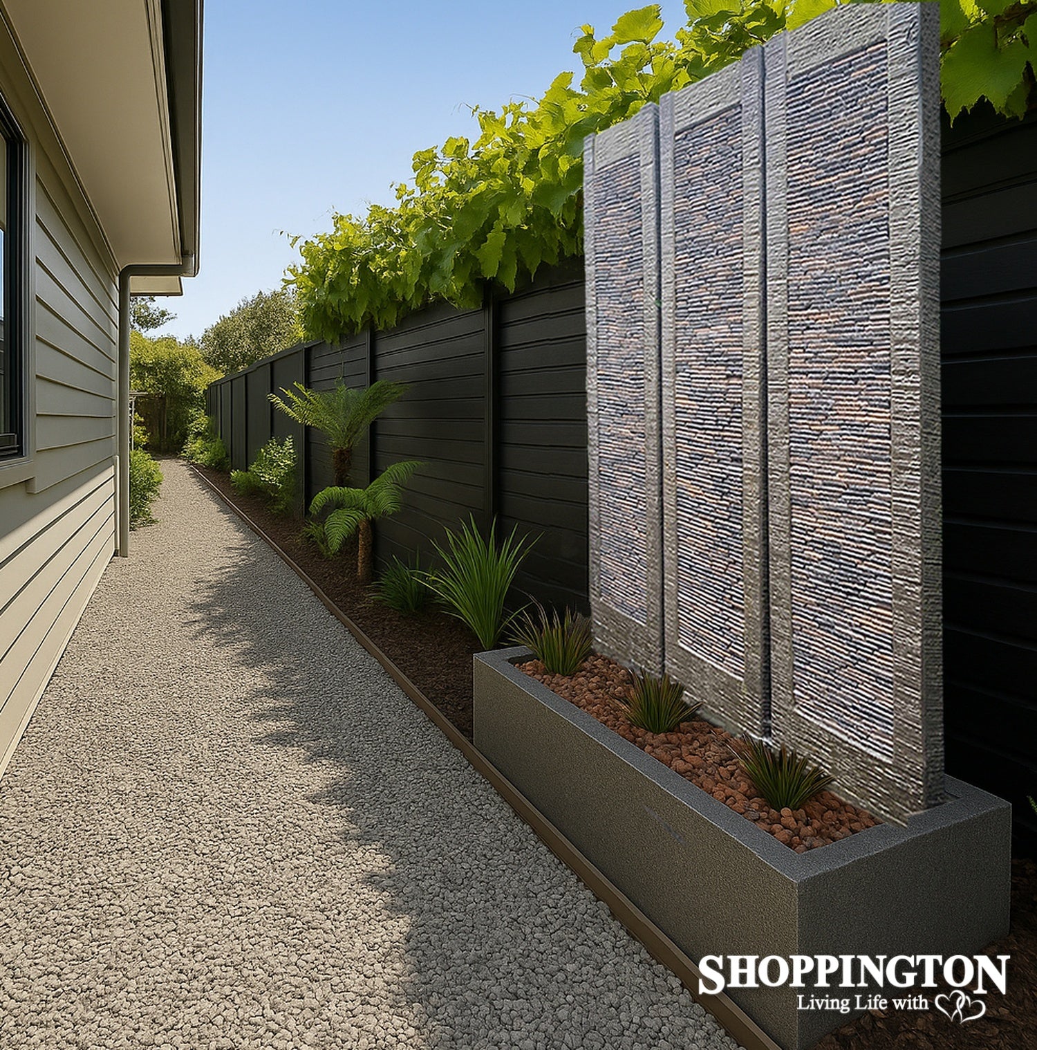 This water feature features 3 stunning pillars of varying heights which the water cascades down over, a fabulous way to incorporate water and art into the garden. Our water features are 100% handmade from solid concrete (with steel reinforcing). Fully self-contained and made to last.