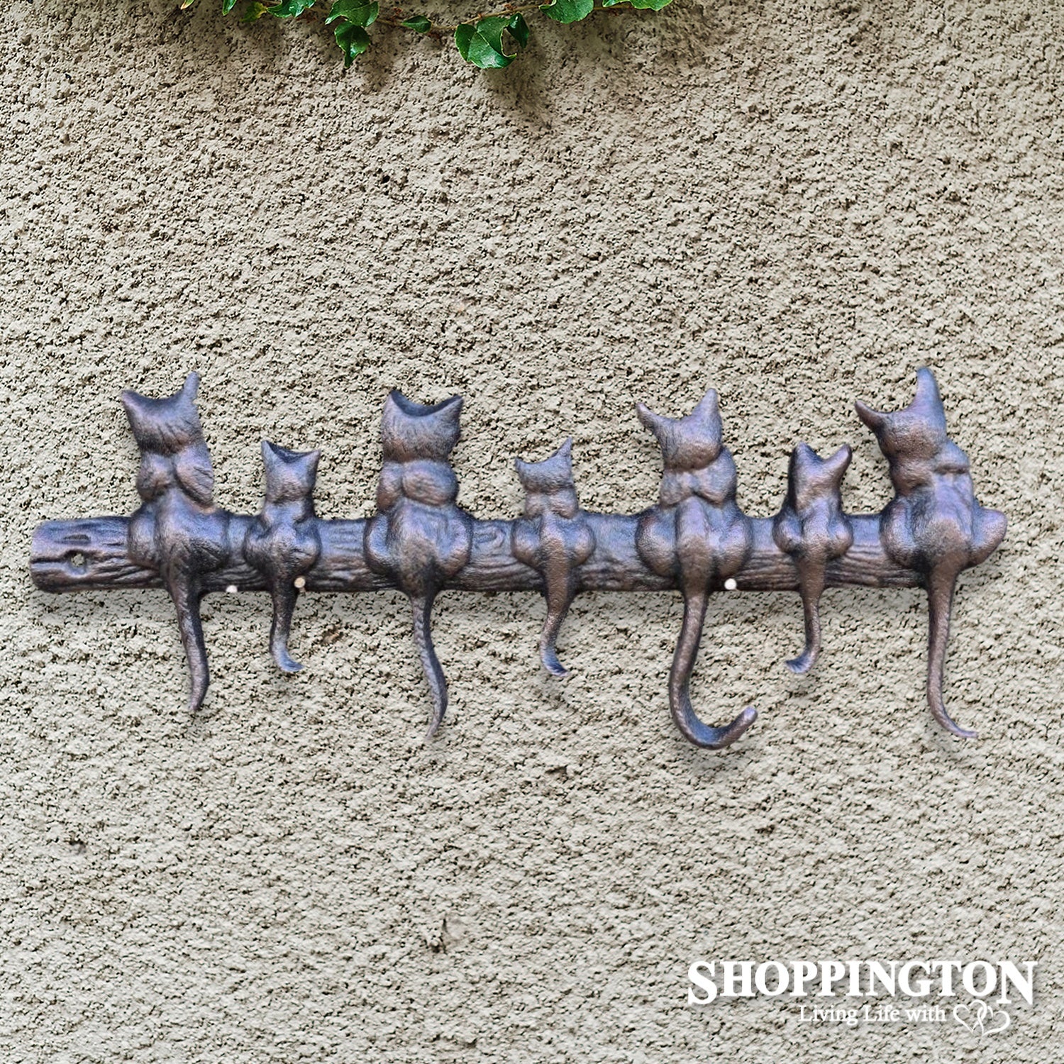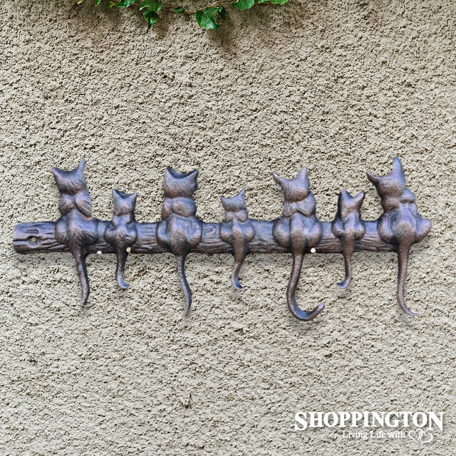 Cats and kittens sitting on a log - their tails providing hooks for hanging keys or any items which need to be easily accessible.