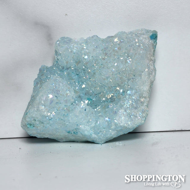 Aqua Aura is a light blue crystal which brings us to our higher self, allowing us to speak honestly, with clarity of mind. It’s extremely high vibrations remove insecurities aiding communication and empowerment.