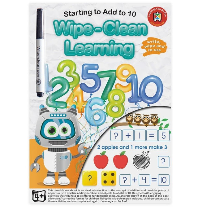 This LCBF Write and Wipe Start Addition Workbook is a great introduction to the world of addition. It provides plenty of opportunity to practice adding numbers and objects to a total of 10. Using the included wipe-clean pen, children can practice the sums over and over to refine their addition skillset. All the answers to the completed engaging activities are located at the back of the book for self-correcting and progress tracking.