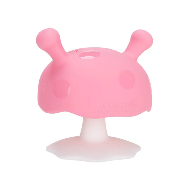 This mushroom shaped teether mimics baby's breastfeeding experience to encourage sucking. Its design gently soothes sore gums & features textures that stimulate touch.