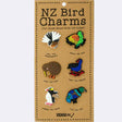 A pack of six assorted New Zealand wildlife shoe charms. These charms are best suited for decorating croc style shoes.