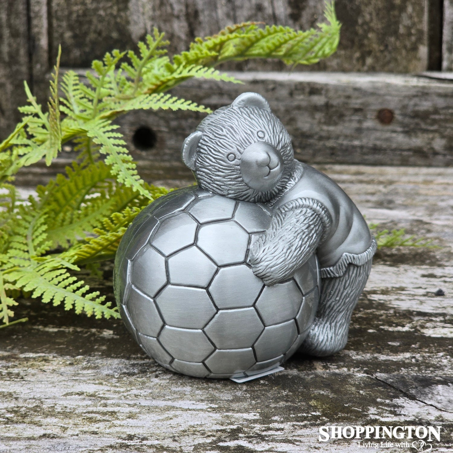 Premium Pewter Soccer Bear Money Box is backordered and will ship as soon as it is back in stock.